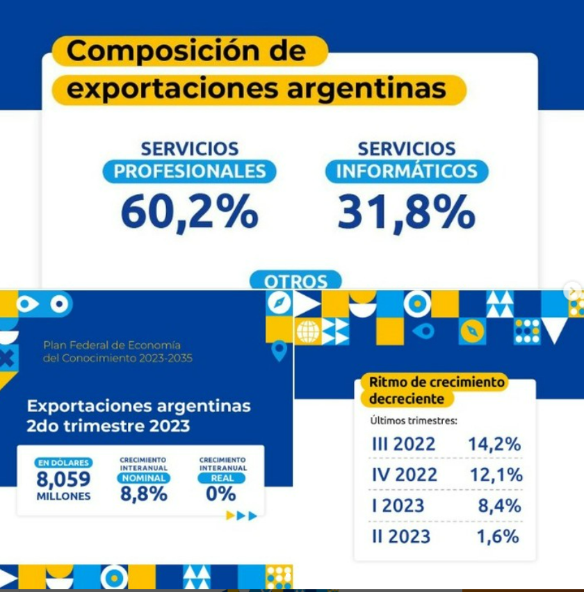 Exportaciones de servicios basados en el conocimiento por USD 8.059 millones / 486 mil empleos formales: 355 mil en servicios profesionales y unos 140 mil en servicios informáticos